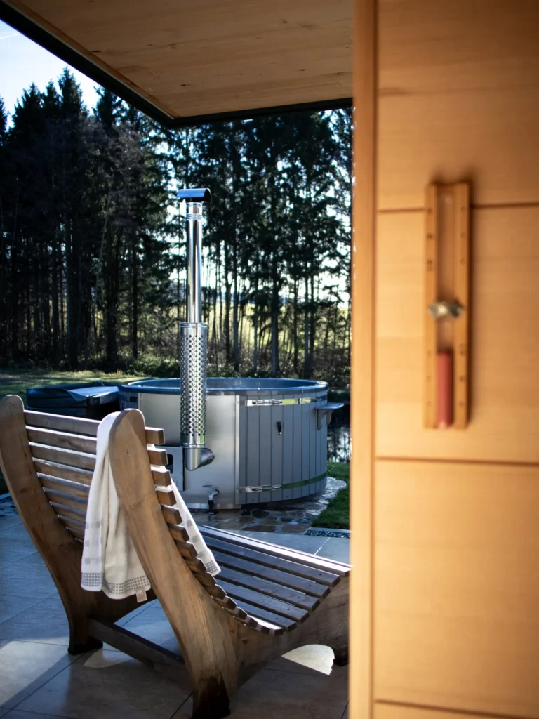Erlebe pure Erholung abseits des Massentourismus. Unsere 2025 neu errichteten Lodges bieten einen Rückzugsort inmitten der Natur. Entspanne im Hot-Tub und genieße die Stille im weitläufigen Garten oder an den idyllischen Teichen. An der Feuerstelle kann man den Tag entspannt ausklingen lassen. Ein Ort der Ruhe, perfekt für eine Auszeit vom Alltag.