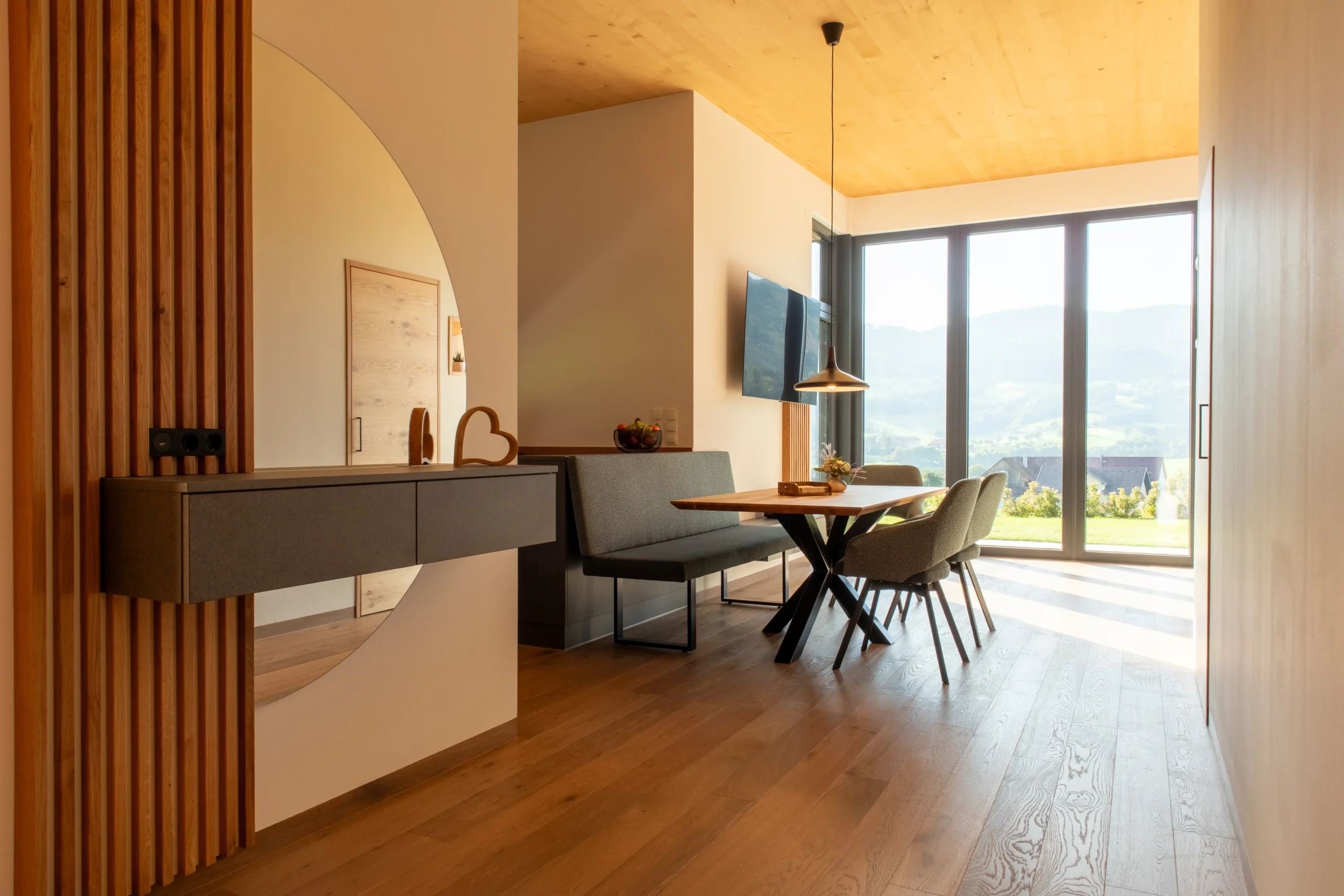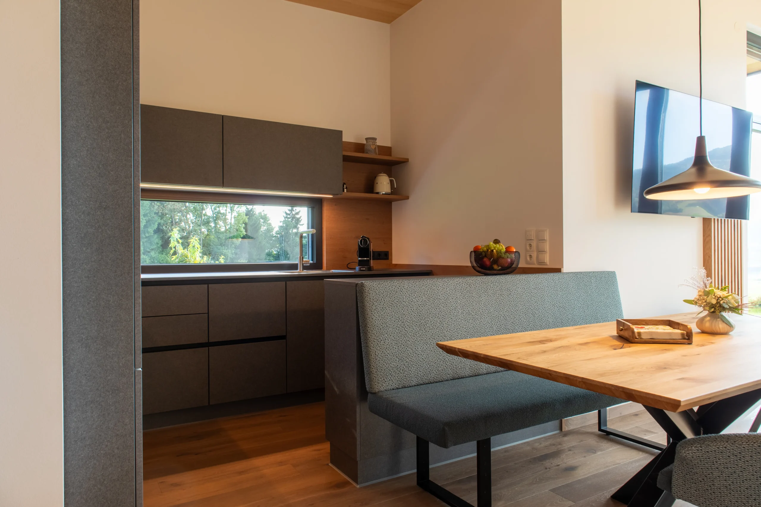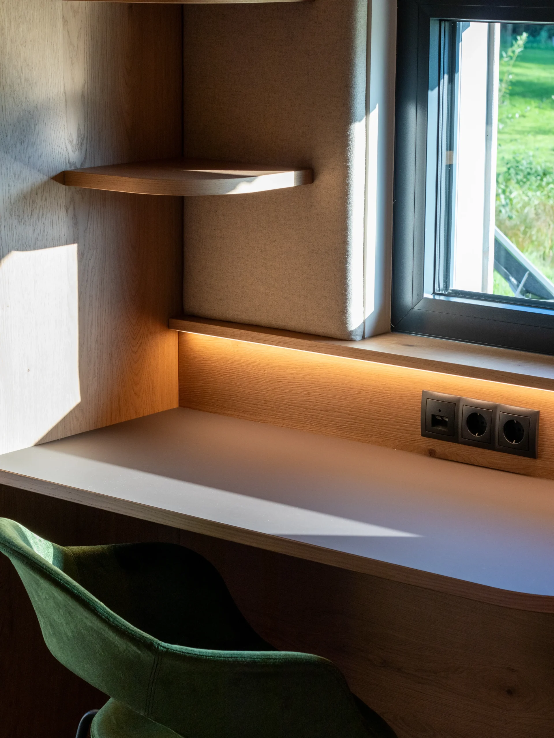 Die Lodge Libelle bietet auf 80 m² direkt am idyllischen Teich flexible Schlafmöglichkeiten für Familien und Freundesgruppen mit individuell gestaltbaren Schlafmöglichkeiten. Eine vollständige Ausstattung zur Selbstversorgung ist natürlich auch vorhanden.